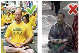 Trong cảnh quay tự thiêu của Đài Truyền hình Trung ương Trung Quốc (CCTV), cảnh sát cầm thảm dập lửa đứng đợi bên cạnh Vương Tiến Đông, không có chút khẩn cấp của người dập lửa, ngược lại lại giống như “đang đợi” ghi hình. Trong cuốn Chuyển Pháp Luân của Pháp Luân Công có viết rõ: “Người luyện công không được sát sinh”.