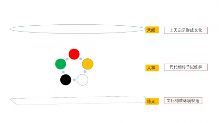 Sự thể hiện của “cội rễ” này trong văn hóa Trung Hoa có thể được chia thành ba phương diện dựa trên góc độ Tam tài (Thiên-Địa-Nhân): cụ thể là “Thiên kinh”, “Địa nghĩa”, “Nhân sự” (việc đời).