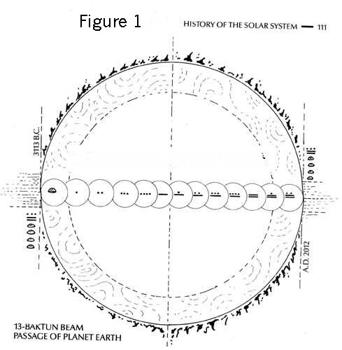 Lời tiên đoán của Maya dựa vào cơ bản lịch pháp của họ, giống như người cổ Trung Quốc dùng Chu Dịch (người Trung Quốc tiền sử dùng biểu đồ để tính đoán ra diễn biến của thiên nhiên). Chủ yếu là nghiên cứu sự đối ứng giữa quy luật vận hành của thiên thể và sự thay đổi trong xã hôị nhân loại. Một lịch sử học gia ở Mỹ, Bác Sĩ Jose Arguelles dùng cả đời ông đi nghiên cưú nền văn minh của Maya. Trong sách “Nhân Tố Maya” ông đã xuất bản, đã chi tiết tường thuật lịch pháp của Maya. Căn cứ lịch Maya gọi là “Cholqij” đã có ghi chép rằng, hệ mặt trời đang đi suốt một đại chu kỳ hơi 5100 năm, từ 3113 B.C. cho đến 2012 A.C. Trong chu kỳ này, sự di động của hệ mặt trời và điạ cầu đang thông qua một chùm ánh sáng đến từ tâm hạch hệ Ngân hà. Đường kinh cắt chéo của Tia sáng này là 5125 cái điạ cầu niên (năm trái đất), tức là địa cầu dùng 5125 năm mới hoàn toàn thông qua tia sáng này.