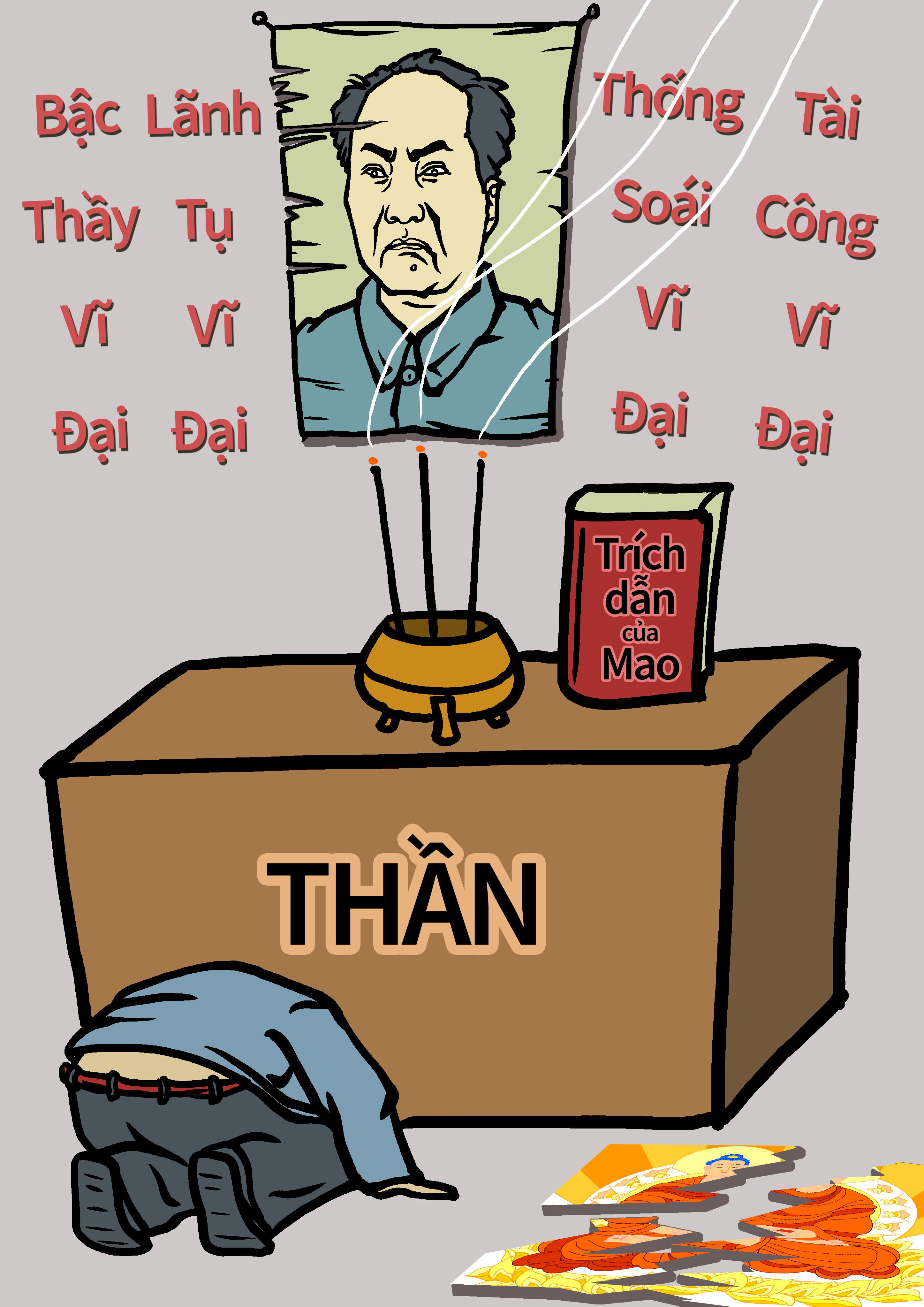 “Tạo Thần” trở thành cơ sở của chế độ độc tài cá nhân, bởi vì Thần sẽ không phạm sai lầm, lãnh đạo Đảng Cộng sản cũng tự nhiên trang bị cho mình cái lốt vỏ bọc chân lý, sao cho những người khác phải mù quáng tin theo nó là được. Sau đó “nhất ngôn đường” (cùng nói một lời) được hợp lý hóa, một bộ não thay thế hàng trăm triệu bộ não, hậu quả có tính tai nạn này lại không được cải chính lại. Tư tưởng độc lập trở thành một sự tình nguy hiểm, bởi vì có thể sẽ đối đầu với việc Trung Cộng không muốn con người đưa ra kết luận riêng, do đó người ta tùy theo dòng chảy lớn, xuôi theo chiều gió .v.v.. tự mình không làm chủ được cuộc sống của chính mình. Tất cả vấn đề đều bắt chước theo Trung Cộng, hoặc là chờ đợi tổ chức quyết định.