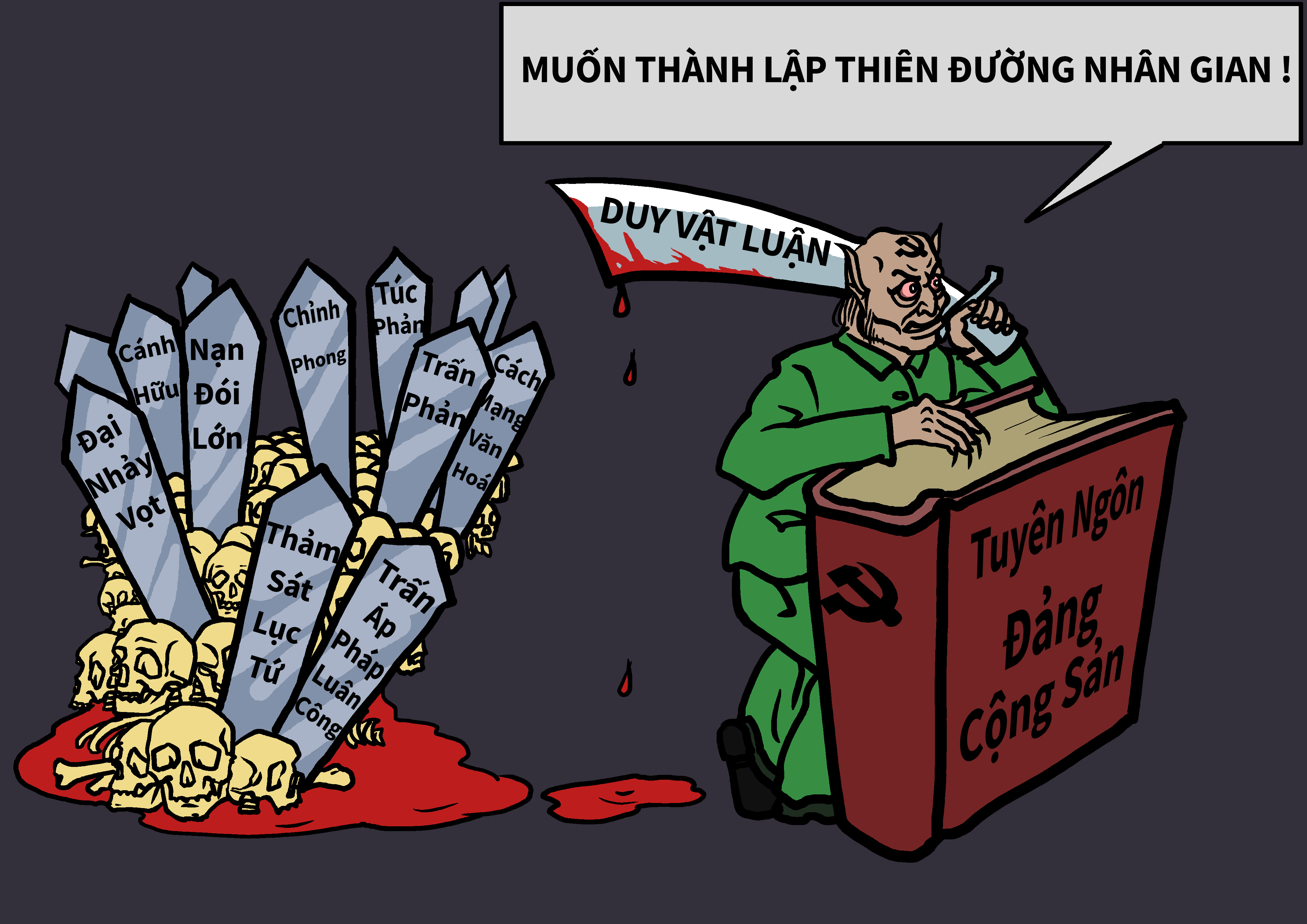 Đời người có ba câu hỏi lớn: Ta là ai, từ đâu tới, sẽ đi về đâu. Những giải thích của tín ngưỡng truyền thống về những điều đó lần lượt là: Thuyết Thần sáng thế, kiếp trước, kiếp này và Thiên quốc, Địa ngục. Thay thế cho “Thuyết Thần sáng thế” là Thuyết vô Thần, tuyên truyền “từ vượn thành người”, “lao động sáng tạo nên con người”; “đời trước, đời này” trở thành “Hai tầng trời của xã hội cũ và mới”, “Thiên quốc, Địa ngục” trở thành “Chủ nghĩa Cộng sản” viễn tưởng hư không.
