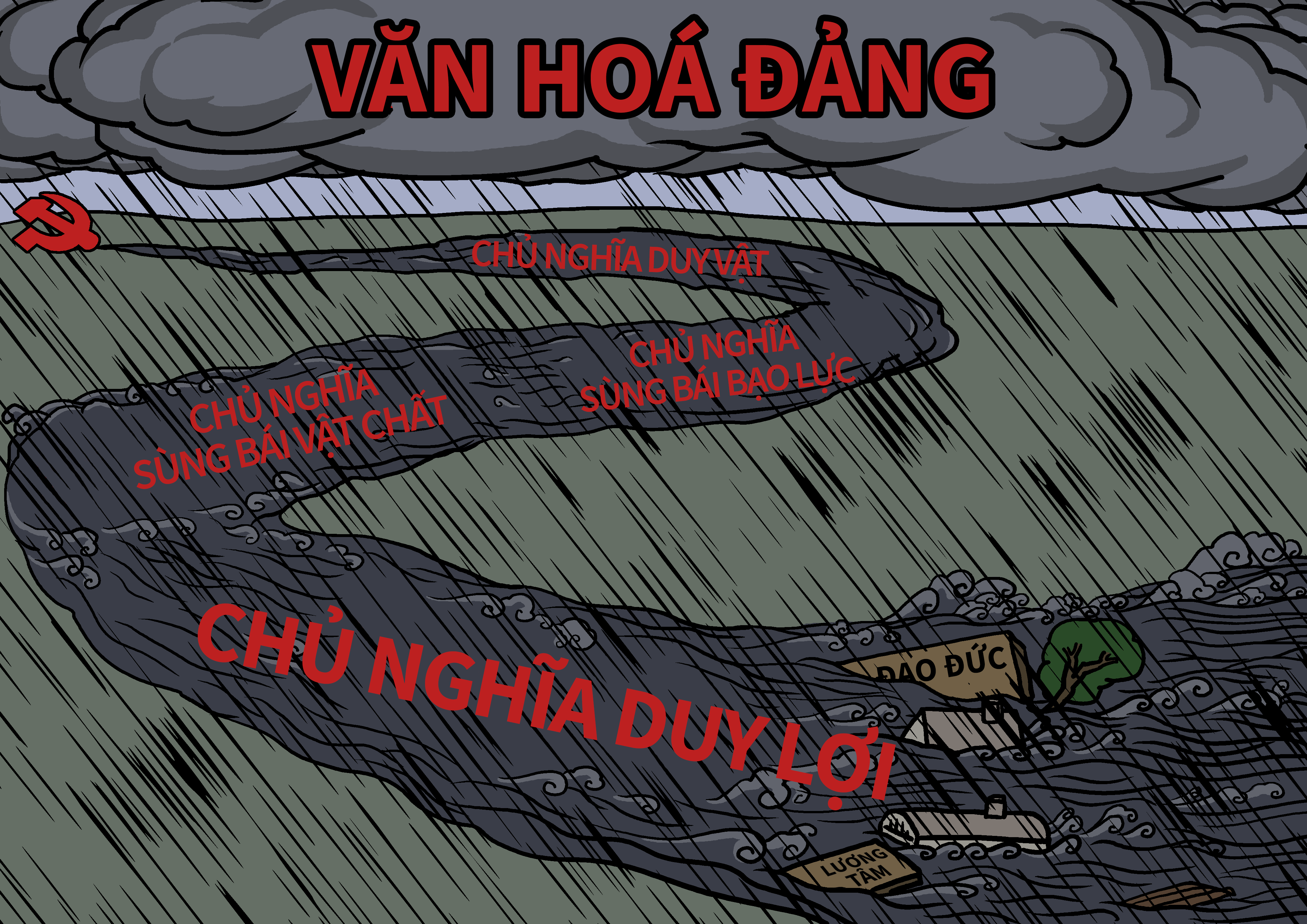 Như hiện nay, Chủ nghĩa duy vật của Văn hóa đảng tiến một bước phát sinh ra “chủ nghĩa tôn sùng vật chất”, “chủ nghĩa sùng bái kim tiền”, “chủ nghĩa hưởng lạc”, cuối cùng dẫn đến “chủ nghĩa duy lợi”, nó dẫn dắt con người thực sự đi đến chỗ đạo đức suy bại, tha hóa. Nhiều người Trung Quốc đương đại, gồm nhiều người thuộc “phần tử tri thức”, phủ phục dưới sự đàn áp bạo lực và chính sách thu mua kim tiền của Trung Cộng, trở thành những người triệt để theo “chủ nghĩa duy lợi”.
