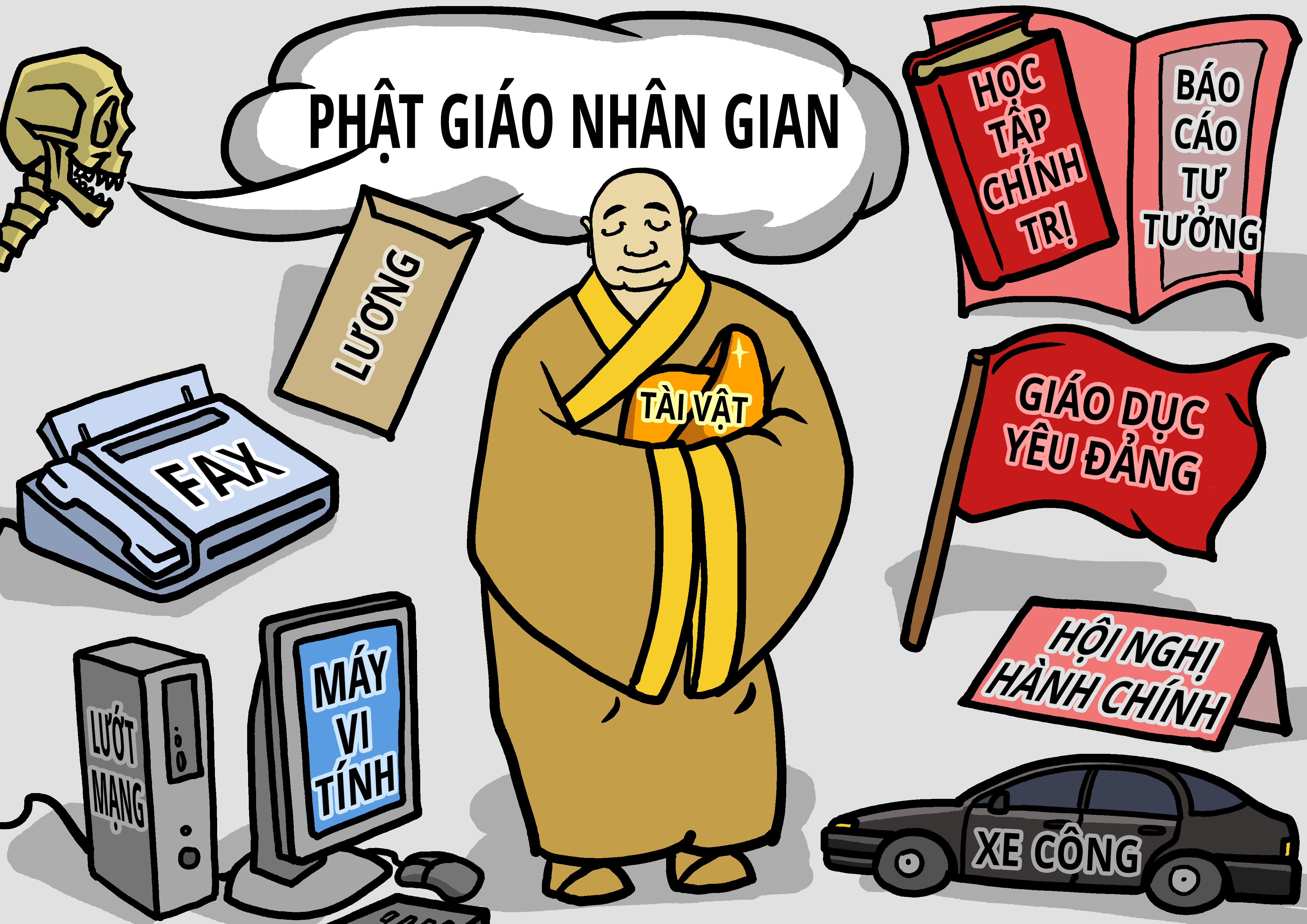 Những năm 20, 30 của thế kỷ trước, hòa thượng Thái Hư đưa ra cách nói “Phật giáo nhân gian”, cho rằng tam thừa cộng Pháp (Thiên thừa, Thanh Vấn, Viên Giác) nếu không thuộc về “Thần quyền mê tín” thì cũng thuộc về “tiêu cực lánh đời”. “Phật giáo nhân gian” lại tiến thêm một bước nữa khi chủ trương “cuộc sống hóa tu hành hiện đại” và “trường học hóa tu hành hiện đại”, “sự nghiệp Phật giáo hiện đại hóa nên bao gồm nhà xưởng, nông trường, bảo hiểm, ngân hàng, công ty, cái gọi là nông công thương .v.v..” Cách làm thế tục hóa, dung tục hóa Phật giáo bằng mượn cái mũ “Phật giáo nhân gian” trực tiếp đi ngược lại nguyên nghĩa của Phật Đà, hoàn toàn không phù hợp với cách tu hành của Phật giáo mấy nghìn năm nay luôn phát nguyện xa rời thế tục, theo đuổi sự thăng hoa về tâm hồn và siêu thoát. Tổ tiên của Bạch giáo Phật Milarepa của Phật giáo truyền từ Tây Tạng cũng nói với đệ tử của mình rằng: Trước khi Ông tu thành chính quả thì không nói tới sự nghiệp độ chúng sinh..