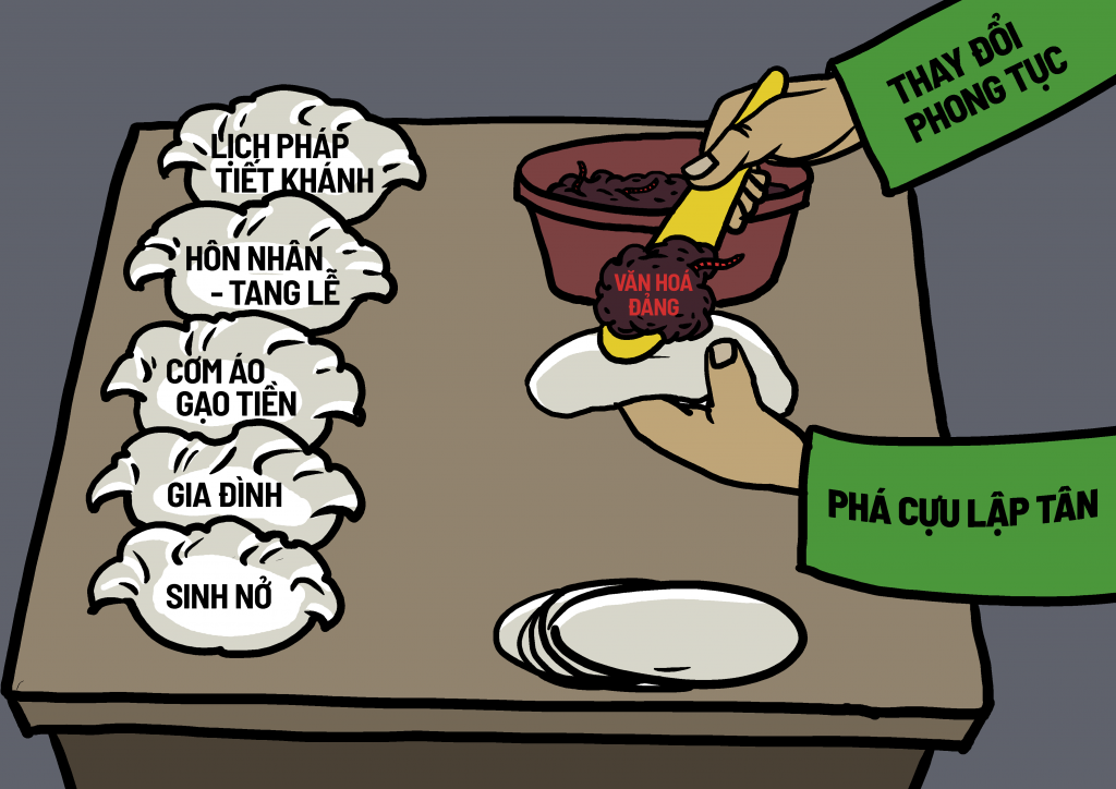 2. Phá bỏ tiết mục truyền thống, ăn tết đảng do đảng sắp đặt