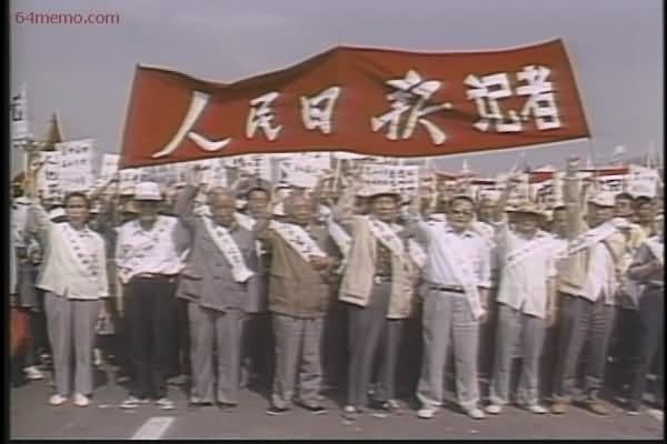 Trong cuộc diễu hành ngày 17 tháng 4, dẫn đầu nhóm người thuộc trường Đại học Thanh Hoa là vài vị giáo sư tóc đã bạc phơ. Họ giơ một biểu ngữ màu trắng có dòng chữ: “Quỳ lâu rồi, đứng lên đi dạo một chút”. Trong hồi tưởng của nhiều người già về những thập niên đầy mưa gió này, giới trí thức Trung Quốc, trên thực tế phải luôn cúi đầu, quỳ gối trước đảng, chỉ có thể ca ngợi chúc tụng đảng, chứ tuyệt nhiên không hề có cơ hội ưỡn thẳng người cất lên tiếng nói độc lập cho lương tri xã hội. Sự kiện các giáo sư lớn tuổi xuống đường công khai phản đối những người cầm quyền là việc mà từ khi Trung Cộng lên nắm quyền đến nay chưa bao giờ xảy ra, điều này được Trung Cộng coi là một tín hiệu nguy hiểm.
