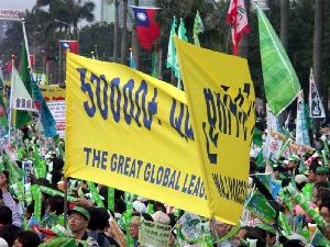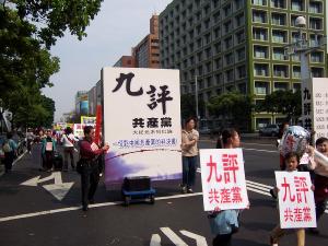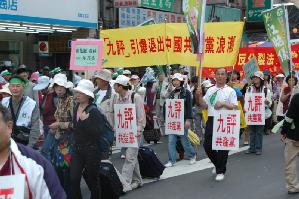 Hàng trăm nghìn người biểu tình phản đối “luật chống ly khai” của Hoa Lục đã tổ chức một cuộc Đại diễu hành 326 hôm nay tại Đài Bắc (326 tức là ngày 26 tháng 3 năm 2005). Cửu Bình cùng làn sóng thoái đảng cũng được nêu cao trong cuộc Đại diễu hành này. Ước tính có thể đã có gần 100 ngàn người ký thoái đảng ngay trong cuộc Đại diễu hành.