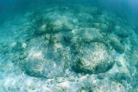 Những tảng đá khổng lồ tạo thành một đường thẳng dưới đáy biển gần Bắc Bimini.