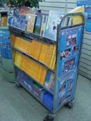 Bên trong tiệm sách, khắp nơi đều có thể nhìn thấy sách và hình ảnh về Pháp Luân Đại Pháp.