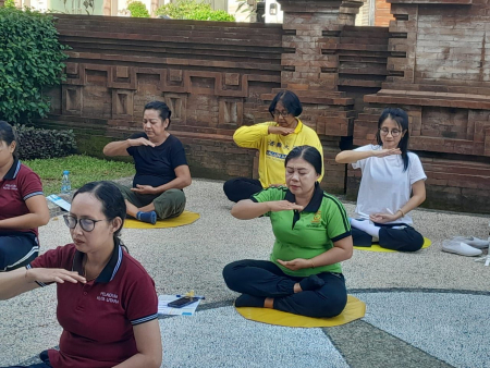 Trưởng khu vực Bắc Kuta, ông I Putu Eka Parmana, S.STP., M.M., đã nồng nhiệt chào đón các học viên đến Văn phòng khu vực Bắc Kuta và bày tỏ hy vọng rằng hoạt động luyện công tập thể tại văn phòng sẽ được tiếp tục duy trì trong thời gian tới.