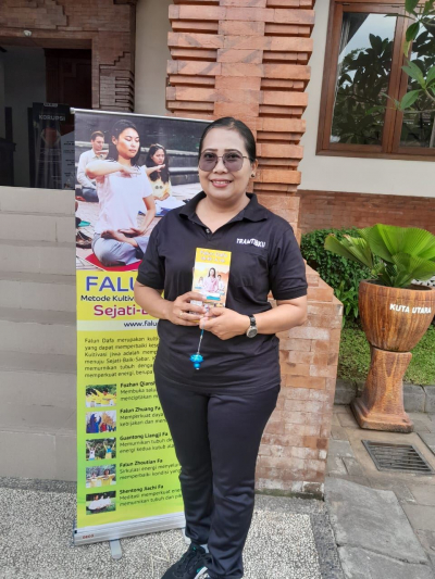 Thư ký khu vực, cô Putu Laksmi Dewi, đã mời các học viên đến hướng dẫn nhân viên chính phủ luyện các bài công pháp của Pháp Luân Đại Pháp. Sau buổi luyện công, cô bày tỏ: “Tôi xin cảm ơn các học viên đã đến văn phòng của chúng tôi hôm nay. Tôi hy vọng rằng sau buổi luyện công này, chúng ta có thể tiếp tục tổ chức các buổi luyện công định kỳ tại đây và cùng thụ ích từ việc thực hành Pháp Luân Đại Pháp.”