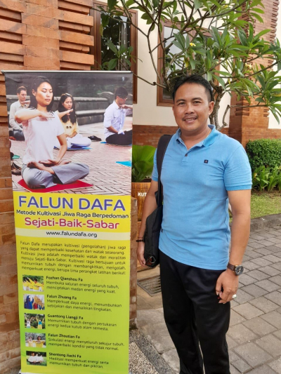 Hình 5. Anh Gede Bayu cho biết anh cảm thấy khỏe hơn nhiều sau khi luyện các bài công pháp của Pháp Luân Đại Pháp.
